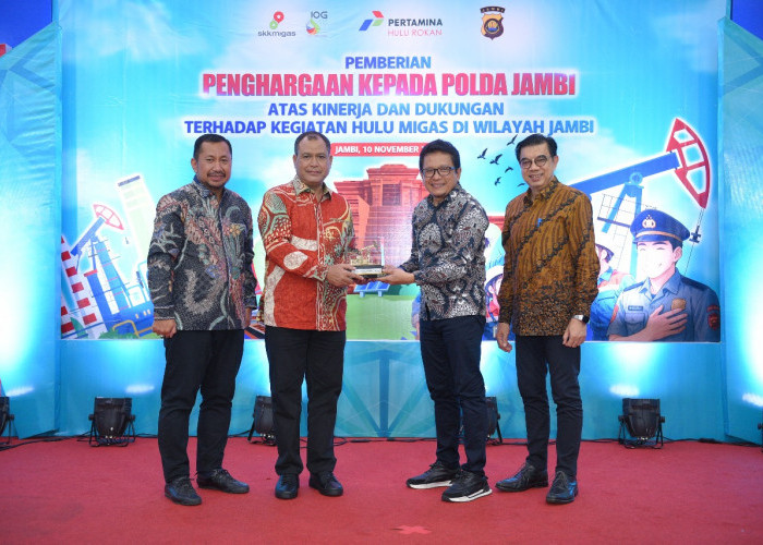 Apresiasi Kinerja Polda Jambi dari PHR Zona 1 diberikan langsung oleh General Manager Hari Widodo kepada Wakapolda Jambi Brigjen Pol Mirza Mustaqim yang mewakili Polda Jambi pada Senin (10/11) lalu. Melalui Perjanjian Kerja Sama (PKS) antara SKK Migas dan Polda Jambi, pengamanan aset dan jalur pipa di wilayah PEP Jambi dan PHE Jambi Merang selama ini berjalan secara efektif. Dedikasi Polda Jambi dalam mendukung keamanan dan kelancaran kegiatan operasi hulu migas terbukti nyata.