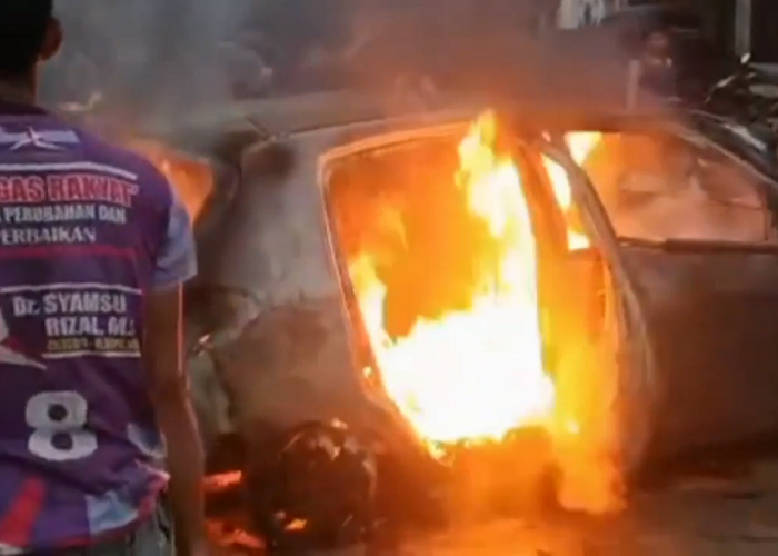 TEBO, JAMBITV.CO - Dua unit mobil yang sedang mengantre di SPBU Sungai Bengkal, Kecamatan Tebo Ilir, terbakar pada Kamis sore (27/11/2025). Tampak petugas SPBU dan warga sekitar, berusaha memadamkan api. Bahkan satu unit di dorong keluar kawasan SPBU. Kadis Damkar Tebo Riswan Pasaribu menjelaskan, bahwa pihak SPBU memadamkan api dari mobil yang berada di kawasan SPBU. Sedangkan personel Pos Damkar Tebo Ilir, memadamkan api kendaraan yang berada di luar kawasan SPBU.